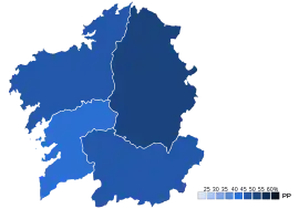 | Partido/Coalición | Candidatura La Coruña | Candidatura Lugo | Candidatura Orense | Candidatura Pontevedra | |