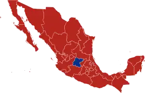 - Robles, Leticia (3 de julio de 2018). «México se tiñe de guinda; Morena conquista congresos, gubernaturas y alcaldías». Excélsior. Consultado el 10 de mayo de 2019.