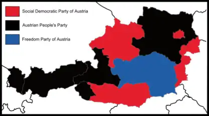 | Partido de la Libertad de Austria (FPÖ) | 962 313 | 20,51 | +2,97 | 40 | +6 | |