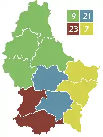 Mapa de circunscripciones de Luxemburgo con número de asientos