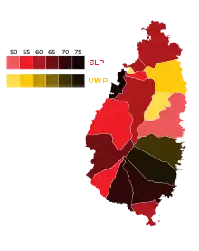 Partido Laborista de Santa Lucía 25 294 56,2 12 +5
