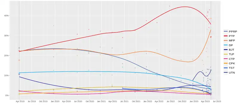 - «กกต.เปิดยอดสมัคร ส.ส.ปาร์ตี้ลิสต์วันแรก 54 พรรค 1,670 คน เสนอแคนดิเดตนายกฯ 35 รายชื่อ». mgronline.com (en tailandés). 4 de abril de 2023. Consultado el 15 de mayo de 2023.