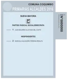 - «Primarias DC Coquimbo». 15 de marzo de 2016. Archivado desde el original el 16 de marzo de 2016. Consultado el 15 de marzo de 2016.