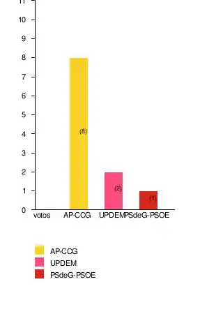 • Alcalde: Bieito Seara Formoso - BNG. A comienzos de 1996 hubo una moción de censura que instauró como alcalde a Xulio Aldemira del PSdeG, con el apoyo de cinco concejales del PPdeG. Posteriormente, Aldemira fue expulsado del PSdeG.