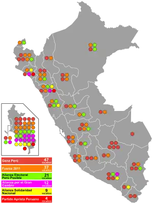 | Circunscripción | GP | F2011 | PP | AGC | SN | APRA | ||||||