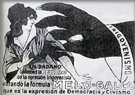 - A base de carteles irreverentes los señores del Frente Único quieren imponerle al país la fórmula Melo-Gallo, Santa Fe, 18 de marzo de 1928