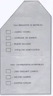 En esta elección, por primera vez en Brasil, se utilizó la papeleta electoral oficial realizada por el Tribunal Electoral. Antes de 1955, los propios partidos políticos elaboraban y distribuían papeletas.[13]