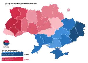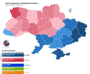 Las elecciones presidenciales de Ucrania de 2010 se llevaron a cabo, la primera ronda el domingo 17 de enero, y el balotaje el domingo 7 de febrero; para la elección del presidente de Ucrania por los siguientes cinco años. Resultó ganador el candidato prorruso Víktor Yanukóvich del Partido de las Regiones, superando a la candidata Yulia Timoshenko, entonces primera ministra de Ucrania. 1.1 millones de ciudadanos votaron por la opción "en contra de todos", un 4.37 % de los votantes.[1]