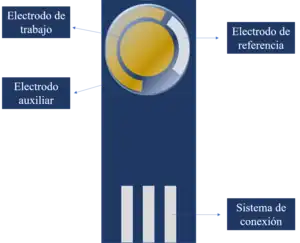 - Electrodo de trabajo. Su respuesta es sensible a la concentración de analito.