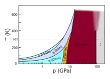 Diagrama de fase del azufre que muestra la estabilidad relativa de varios alótropos[13]