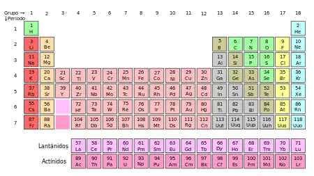 La tabla periódica de los elementos químicos. Las columnas representa los grupos. Los grupos 1, 2 y del 13 al 18 son los grupos de "elementos representativos".