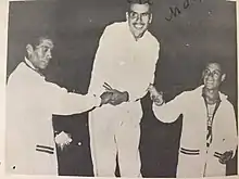 De, derecha a izquierda, Eligio Galicia (Méx.), Santiago Nora (Chile), Guillermo Sola (Chile) Juegos Panamericanos 1955 Ciudad de México.