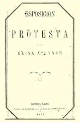 - Exposición y protesta que hace Elisa Alicia Lynch, 2ª ed., Asunción, 1987, facsímil con añadido de Cartas inéditas de Elisa Alicia Lynch, por E. Solano López Lynch y E. López Pesoa, pág. 65-182.