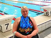 En febrero de 2009, nadó en los 12º Juegos de Masters de Australia y ganó 7 medallas de oro individuales y 2 de oro en pruebas de relevos como nadadora discapacitada.[23]