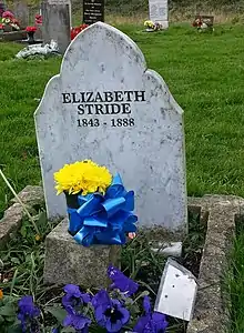 Elizabeth Stride fue enterrada el 6 de octubre de 1888 en el East London Cemetery, en Plaistow (Londres), en la fosa n.º 15 509, en la sección n.º 37. El funeral fue llevado a cabo a expensas de la parroquia por el señor Hawkes, director de pompas fúnebres.