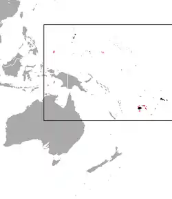 Se encuentra en Samoa Americana, Fiyi, Guam, Micronesia, Palaos, Samoa, Tonga y Vanuatu.