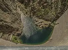 La presa tiene 82 metros de altura y el embalse tiene 291 metros de longitud y una superficie de 45.0 ha.