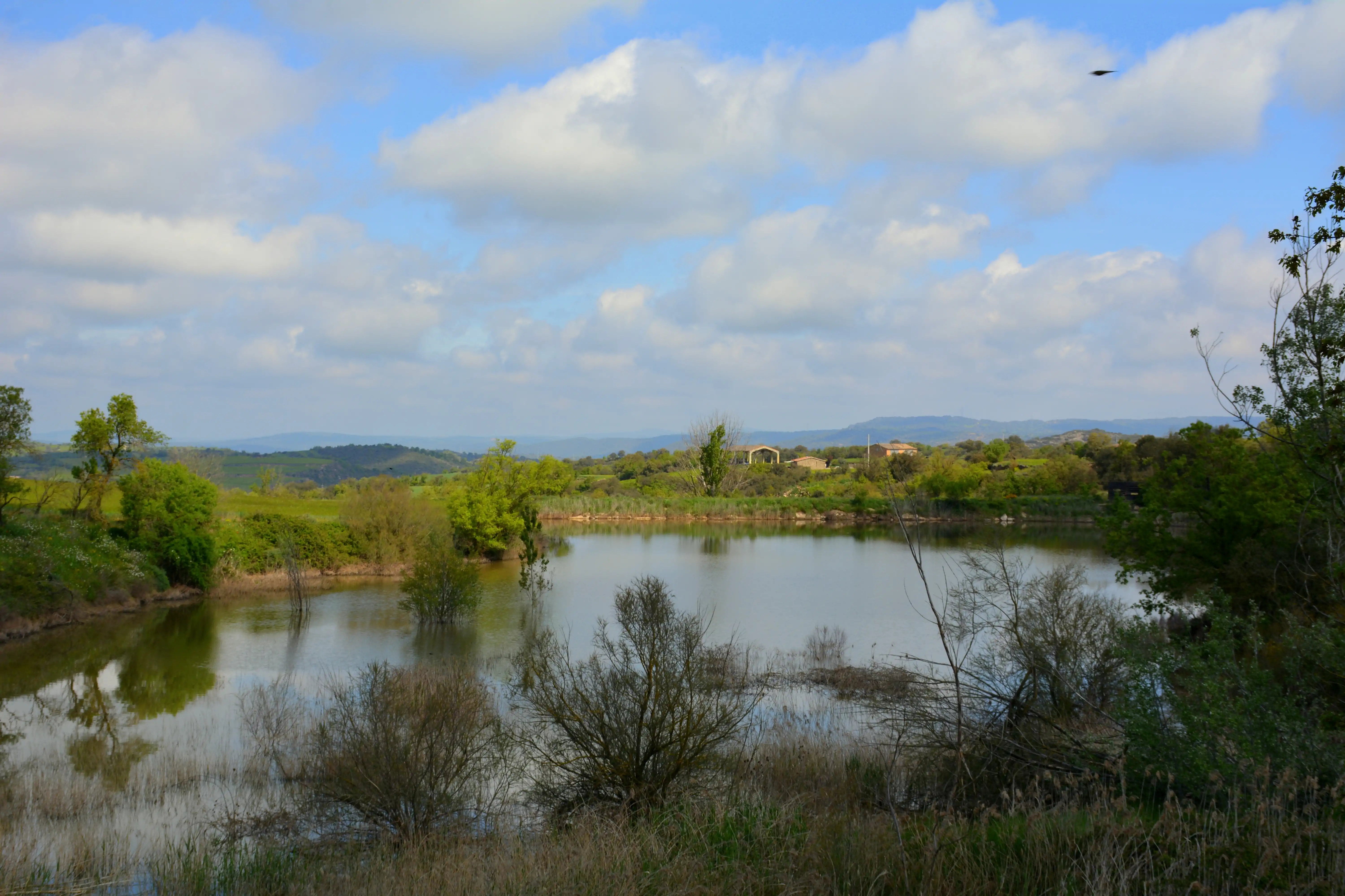 Está situado en un lugar donde predominan los cultivos de secano, separados por pequeños márgenes arbolados. En los márgenes del embalse crecen espadañales, cañaverales, y hay también varios árboles característicos del bosque de ribera, como chopos, sauces blancos, álamos, tamariscos, etc, aunque no llegan a constituir un bosque diferenciado. Destaca la presencia en el agua de comunidades algales, dominadas por potamogeton pectinatus, muy bien constituidas. En la cola del embalse y aguas arriba de éste, el torrente de Palou presenta un extenso carrizal.[1]