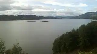 El embalse de Tominé es un cuerpo de agua que se extiende por terrenos de la cabecera municipal de Guatavita y el municipio de Sesquilé, municipios ubicados al norte de Bogotá. Este embalse hace parte del sistema hídrico de la sabana de Bogotá junto con los embalses del Sisga y Neusa. Tiene una longitud de 18 Kilómetros de largo por 4 ancho y 50 metros en promedio de profundidad, con capacidad para 690 000 000 de metros cúbicos de agua, por lo que se ha convertido en una reserva de vital importancia para el sector. Su capacidad es siete veces más grande que la del Sisga y que la del Neusa.[1]