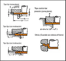 Los pisadores de tipo fijo pueden ser planos o con una ligera inclinación y permiten fácilmente el deslizamiento de la chapa impidiendo la aparición de defectos mientras el espesor en las distintas zonas de la pieza embutida sea poco variable, mientras que los pisadores de presión o los pisadores con freno controlan o impiden el deslizamiento de la chapa y se emplean cuando se quieren obtener espesores de pared más finos que el espesor de la chapa inicial.