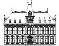 El edificio de la Academia de Utrecht, con el segundo piso, entre las ventanas los medallones de retrato (1891).