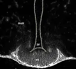 ![]() ME= Eminencia media. 3V= tercer ventrículo. | ||