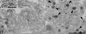 Con microscopía electrónica y a grandes aumentos, se observa que las neuronas neurosecretoras característicamente muestran "varicosidades" en el extremo de sus axones. Estas dilataciones están adyacentes a los capilares de la circulación porta de la Eminencia media (EM) y contienen vesículas grandes de 80-120 nm de diámetro con centro denso.[10]