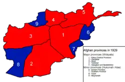 ![]() Provincias del Emirato de Afganistán en 1929 | |||||||||||||||||||||||||||||||