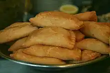 La empanadilla es un tipo de pastel que se puede considerar una variante de la empanada[1]. Suele hacerse con una masa rellena de carne picada y otros ingredientes en forma semicircular que posteriormente se fríe en aceite (esta es una de las diferencias con respecto a la empanada, que suele ser cocinada al horno para que el pan de su superficie se haga). Su textura exterior es crujiente y contrasta con la blandura de su interior, siendo la masa similar a la empleada en los pestiños. A veces puede servirse caliente como una tapa, sola o acompañada de alguna salsa.[2]