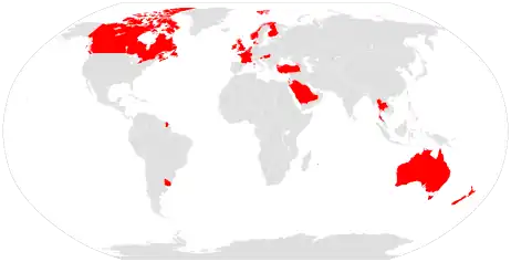 Entre los que países que empezaron a exigir la práctica del empaquetado neutro en su legislación están: Francia (en enero de 2017), Reino Unido (en mayo de 2017), Nueva Zelanda (en junio de 2018), Noruega (en julio de 2018), Irlanda (en octubre de 2018). Tailandia, Uruguay (2019), Arabia Saudita, Canadá, Eslovenia,[5] Singapur, Turquía (2020), Bélgica, Israel y Hungría tienen leyes de empaquetado neutro de cigarrillos, pero aún no han entrado en efecto. Los países que tienen leyes aprobadas de empaquetado neutro de cigarrillos pero que aún no están en vigor son Georgia, Finlandia y Armenia.