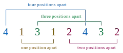 Por ejemplo, un emparejamiento de Langford para n = 3 muestra la secuencia: 2,3,1,2,1,3.