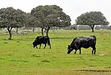 La dehesa es un ecosistema habitual el oeste de la península ibérica, concretamente en zonas llanas de Extremadura, Provincia de Salamanca, y Provincia de Huelva (en España) y en el Alentejo y Algarve de Portugal. La dehesa es el hábitat del cerdo ibérico, así como diferentes especies de ganadería ovina, toro bravo y multitud de especies salvajes.