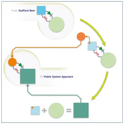 Adicionalmente, el VSA introduce una matriz conceptual basada en un proceso iterativo que describe el transcurso de concepción y realización de un sistema viable, el cual comienza a partir de una idea que necesita ser contextualizada más profundamente dentro de una estructura lógica, esto es, definiendo una estructura física. Una vez definida la estructura física, esta puede ser relacionada con recursos y sistemas externos, enmarcando a todos dentro de una estructura extendida que, mediante su propia dinámica, genera numerosas estructuras específicas que eventualmente se convierten en un sistema viable. Este proceso recurrente puede representar el desarrollo de un nuevo negocio así como de un distrito industrial.