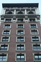 En la calle 40, los pisos del cuarto al décimo están revestidos de ladrillo y los bordes exteriores de la fachada tienen cantoneras de piedra. Las ventanas son cuadradas y tienen marcos de mármol en su mayor parte.[21][25][32] El cuarto piso es un piso de transición y consta de un entablamento de piedra.[27] Cuatro urnas flanquean las ventanas del cuarto piso. En los pisos cuarto al noveno, hay un soporte de consola sobre cada ventana, que sirve como piedra angular. En el décimo piso, las ventanas están flanqueadas por escudos tallados.[25] Una balaustrada de piedra corre sobre el décimo piso y se sostiene sobre ménsulas.[27][25][32]