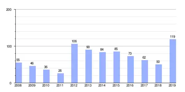 | Gráfica de evolución de Deuda viva del Ayuntamiento de Enix entre 2008 y 2019 |