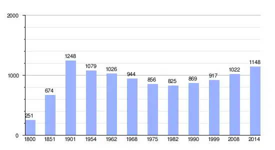 Los datos demográficos contemplados en este gráfico de la comuna de Enquin-les-Mines[4] se han cogido de 1800 a 1999 de la página francesa EHESS/Cassini, y los demás datos de la página del INSEE.[5]
