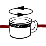 ![]() Una taza de café con bandas unidas a su asa y al lado opuesto lista para ser girada |