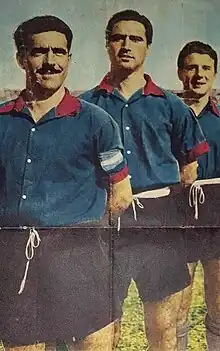 ![]() Jorge Hidalgo, Enrique Brunetti y Fernando Gianserra, integrantes de la famosa línea media de Tigre durante la década de 1950. | ||