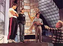 En un segundo tiempo, la compañía pasa a realizar los ensayos en el escenario del teatro donde ya se ha montado la escenografía. Allí se ponen a punto los distintos aspectos técnicos del espectáculo, y su coordinación con el juego de los actores. Son los "ensayos técnicos", en los que se ensayan las luces (ensayo de luces), el sonido y la música, los efectos especiales y audiovisuales, y sobre todo el trabajo de maquinaria o tramoya para los cambios de decorado. Los actores ya empiezan a actuar llevando el vestuario, maquillaje y peinados definitivos para comprobar si necesitan retoques.[1]