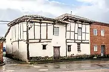 Casa con entramado. Arquitectura popular. Guadilla de Villamar (España).