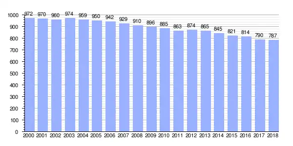 | Gráfica de evolución demográfica de Entrecruces entre 2000 y 2018 |