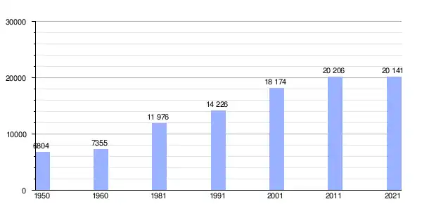 | Gráfica de evolución demográfica de Entroncamento entre 1950 y 2021 |