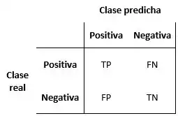 - Falso negativo (FN): Cuando el resultado predicho es negativo pero el real pertenece a la clase positiva.