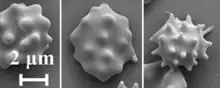 Fotografía de microscopía electrónica de barrido en la que se muestran varios equinocitos.