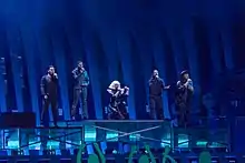 ![]() Equinox en Eurovisión 2018 (i-d: Vlado Mihailov, Johnny Manuel, Georgi Simeonov, Trey Campbell, Zhana Bergendorff) | ||