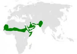 La terrera negrita se encuentra en África a lo largo del Sahel y el archipiélago de Cabo Verde, y en el suroeste de Asia, desde la península arábiga hasta el noroeste del subcontinente indio.[5]