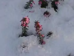 ![]() Erica carnea floreciendo entre la nieve | ||