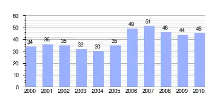 | Gráfica de evolución demográfica de Erice entre 2000 y 2010 |