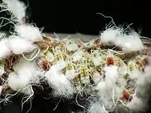 Eriosomatinae es una subfamilia de pulgones que viven de la savia de las plantas y producen una secreción algodonosa, blanquecina, hecha de cera. Los adultos son alados y pueden emigrar a otras plantas donde depositan masas de huevos. Las ninfas y adultos están protegidos contra los predadores por la masa algodonosa que los cubre. En vuelo tienen la apariencia de una pelusa flotante. Son del hemisferio norte.[2]
