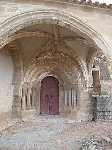 La iglesia, consagrada a la Virgen, es una construcción tardorrománica de sillares. Tiene una portada románica con arquivoltas y un porchegótico cubierto con bóveda de grandes ventanales. Las capillas laterales de la iglesia también son añadidos de épocas posteriores. El ábside está en el interior del semicírculo con forma poligonal. Son muy numerosas las ménsulas soportadas en estatuas esculpidas. En la fachada oeste se encuentra un pórtico gótico y una espadaña. En la iglesia se encontraron restos medievales de murales con la imagen de los apóstoles.